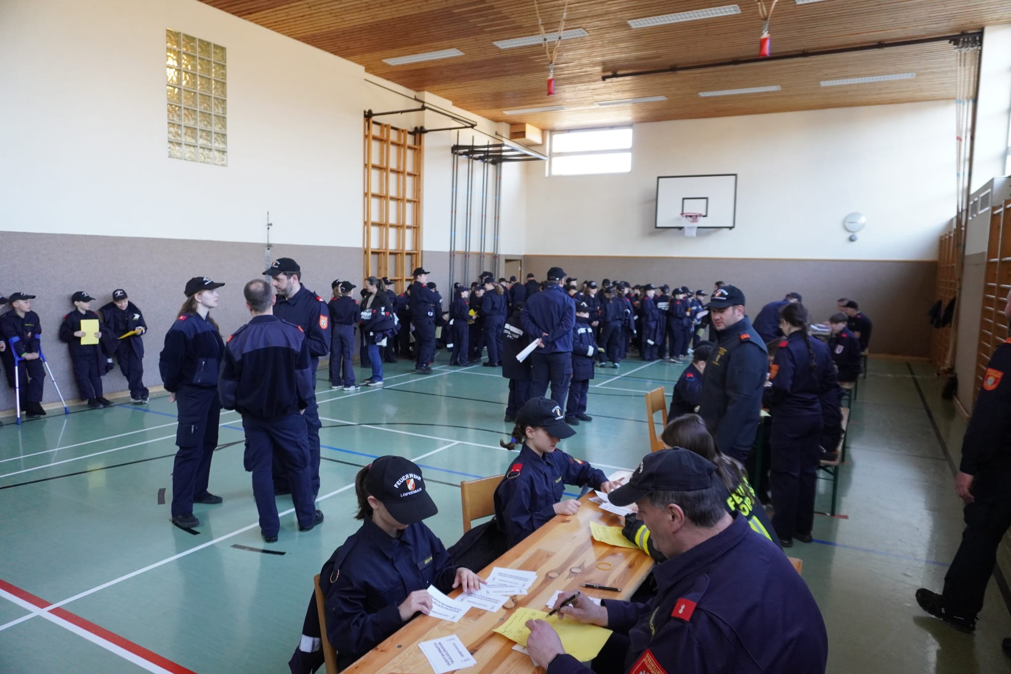 Die Wissenstests waren am Programm. Aufgrund der großen Teilnehmerzahl von 412 Feuerwehrjugendmitgliedern wurde der Wissenstest wie in den vergangenen zwei Jahren bereits aufgesplittet auf die einzelnen Abschnitte.