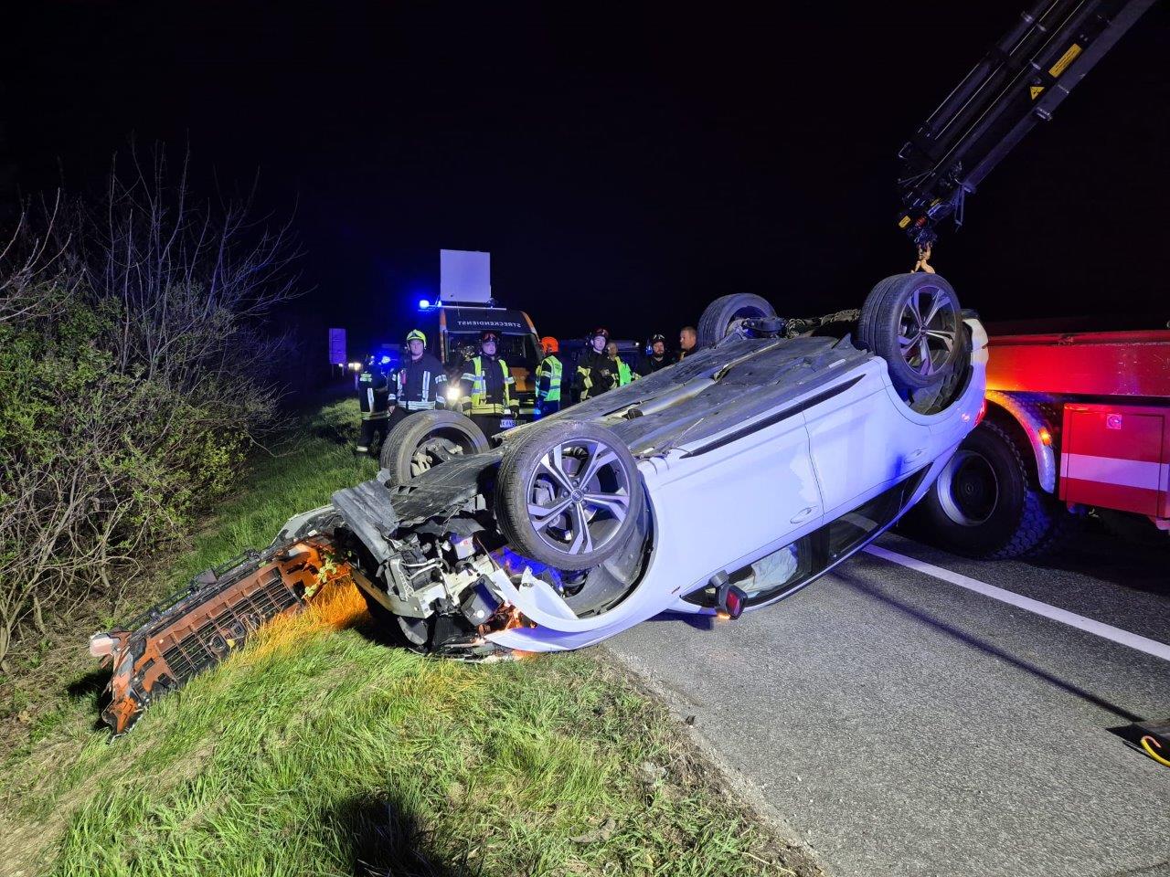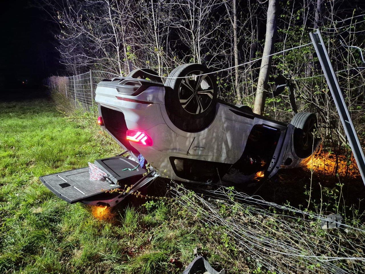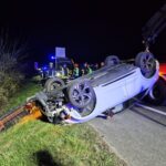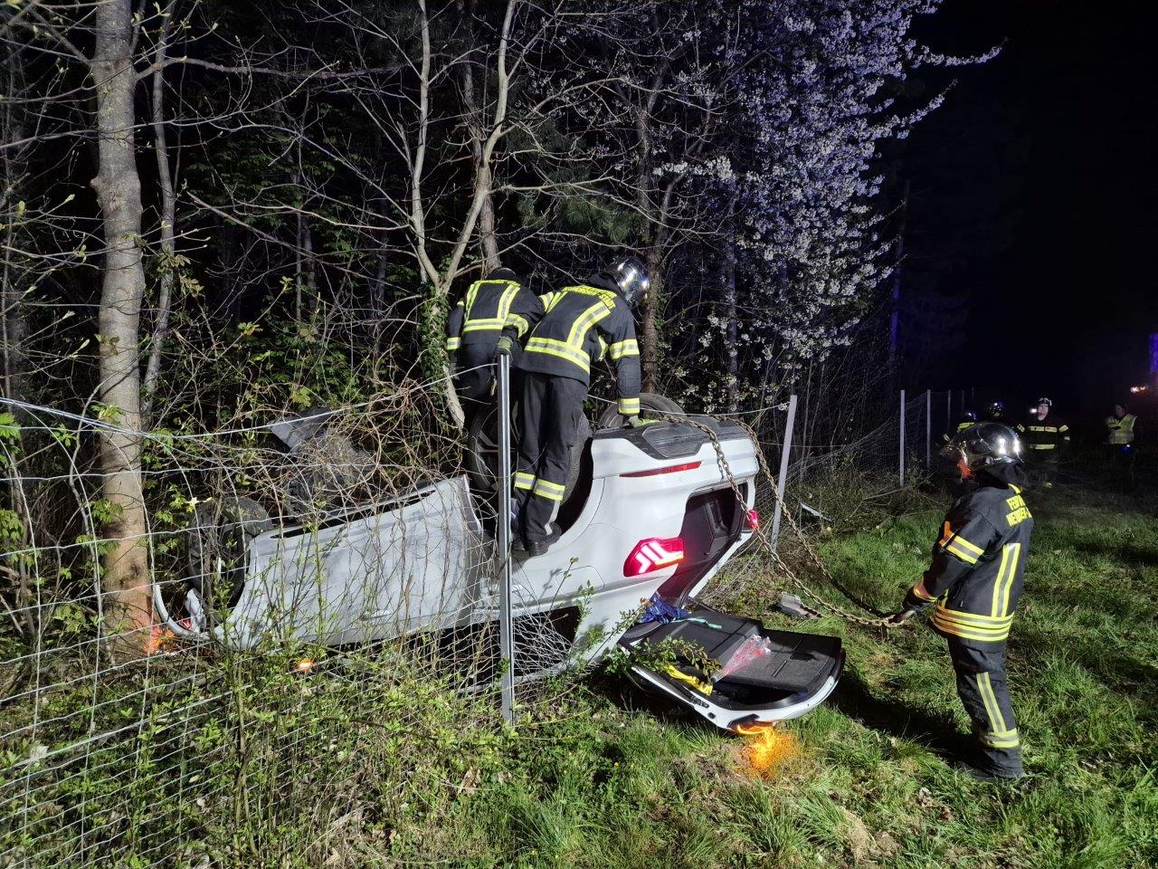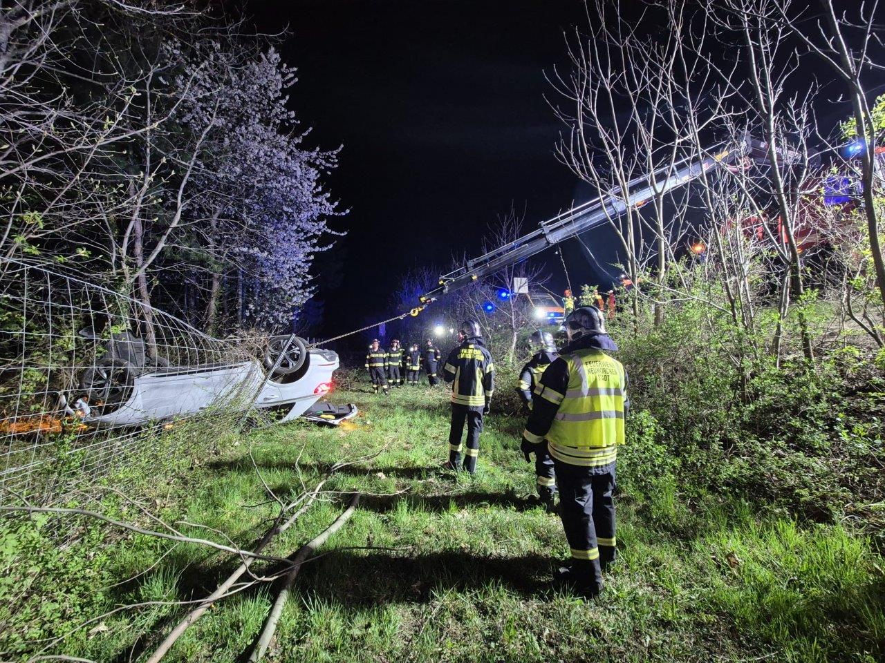 Eine Lenkerin kam bei Breitenau aus noch unbekannter Ursache von der Fahrbahn ab und stürzte über eine Böschung. In Folge überschlug sich der Wagen, durchbrach einen Wildschutzzaun, krachte gegen eine Baum und blieb am Dach liegen.